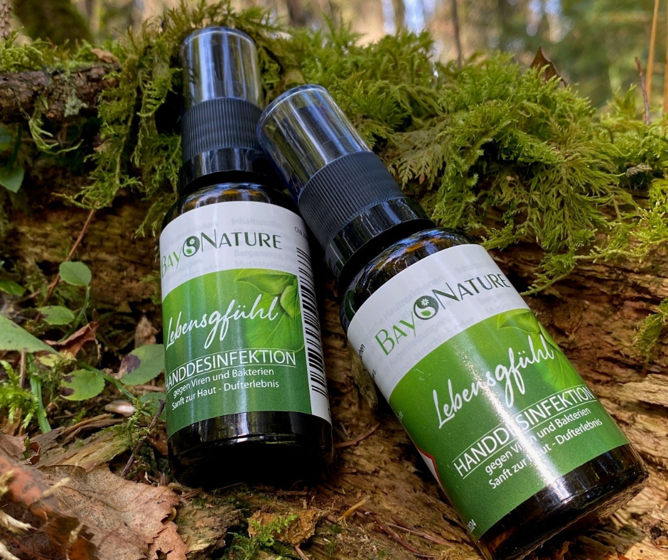 ist Berge, Wälder und Seen. Bayern ist authentisch. Bayern ist „LEBENSGFÜHL“. Das Handdesinfektionsspray von BayNature vereint diese Heimat in sechs hochwertigen Düften, die in der bayrischen Natur zu finden und rein aus ätherischen Ölen sind. Die Düfte der einzelnen Öle entsprechen Bergamotte, für Gute-Laune und achtsame Momente. Pfefferminze, zur Förderung der Konzentration. Weißtanne, die Wächterin des Waldes sorgt für Kraft und Energie. Kiefer, widerspenstig gegen Krankheitserreger für Lebenskraft und Gesundheit. Wacholderbeere, aktivierend und reinigend. Muskatellersalbei, vitalisierend und inspirierend zur Förderung der Kreativität.