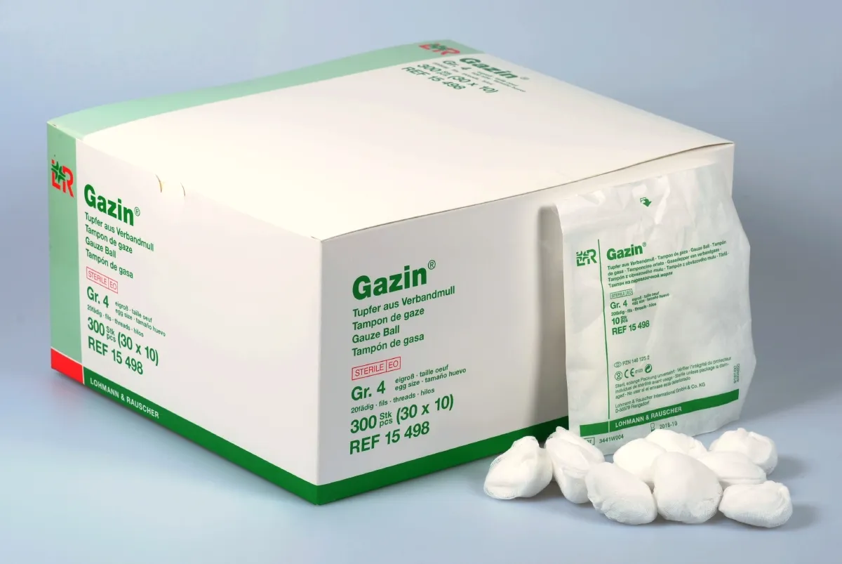 Die unsterilen Gazin Tupfer RK aus Verbandmull (DIN EN 14079) eignen sich für den Einsatz im OP-Bereich. Die Tupfer enthalten einen Röntgen- kontrastfaden. Sterile Tupfer mit Röntgenkontrastfaden sind unter dem Markennamen Setpack Tupfer RK verfügbar.