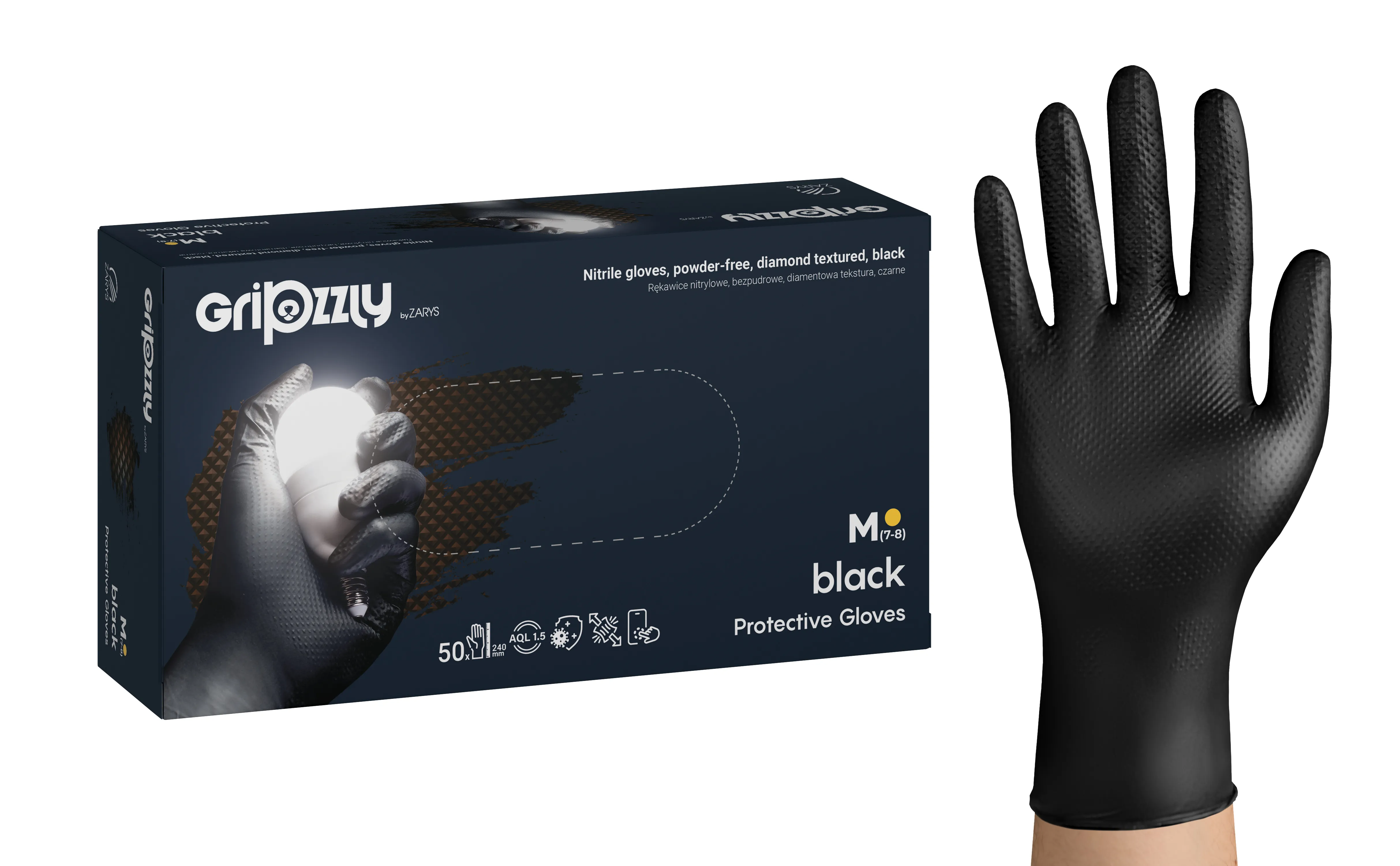 Produktinformationen "Gripzzly Nitrile gloves, powder-free, diamond tex. black XXL"