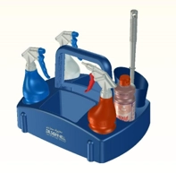iTray Reinigungskorb zur praktischen und sicheren Aufbewahrung sowie zum Transport der iSpray Handsprüher, Reinigungstextilien oder Toilettenbürste. iTray kann mit einem Zusatzkorb und einer WC-Bürsthalterung erweitert werden.
