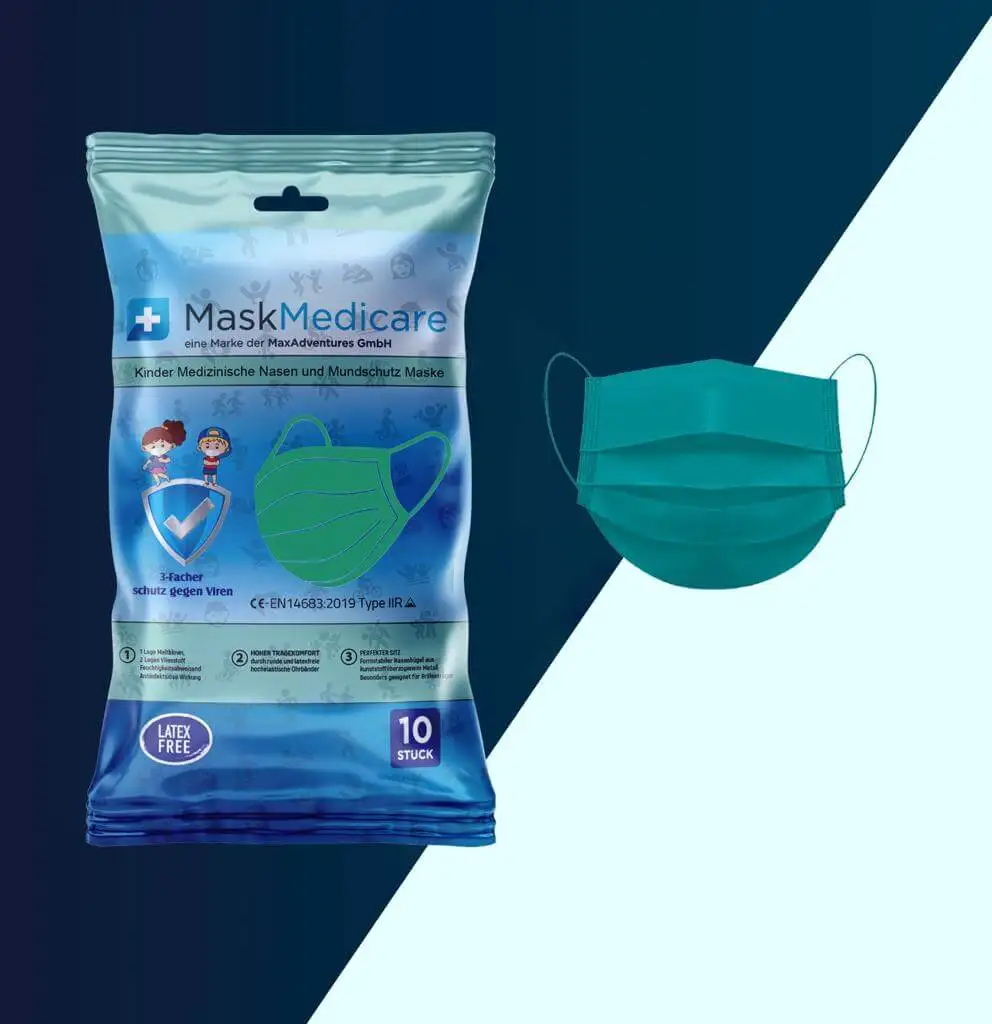Produktinformationen "Kids 3-lagige MaskMedicare TYP IIR MNS Maske - Farbe Grün"