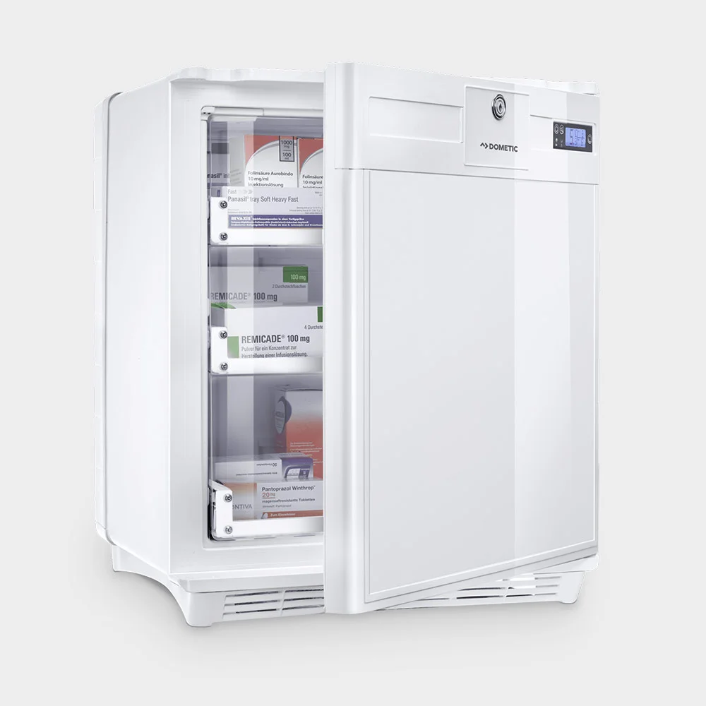 Dieser miniCool Kompressorkühlschrank ist die perfekte Lösung für Krankenhäuser und Gesundheitszentren die wärmeempfindliche Medikamente bei einer Temperatur zwischen +2 C und +8 C kühlen müssen. Er verfügt über eine integrierte Lüftung für zuverlässig konstante Temperaturen und gibt ein Warnsignal aus wenn die Tür länger als 20 Sekunden geöffnet bleibt. Abmessung: Höhe 592 x Breite 486 x Tiefe 494 mm