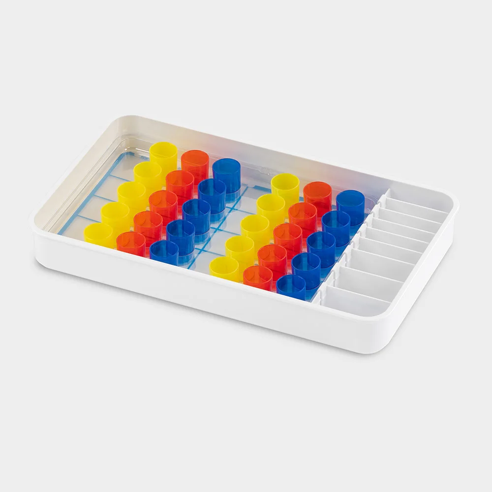 Tagestablett für 30 Becher Tabletten oder Tropfen und Pulver-Tütchen mit Tabletteinsatz Beschriftungsfolie verstellbarem Teilersystem und Folienstift Maße: L 433 x B 253 x H 55 mm