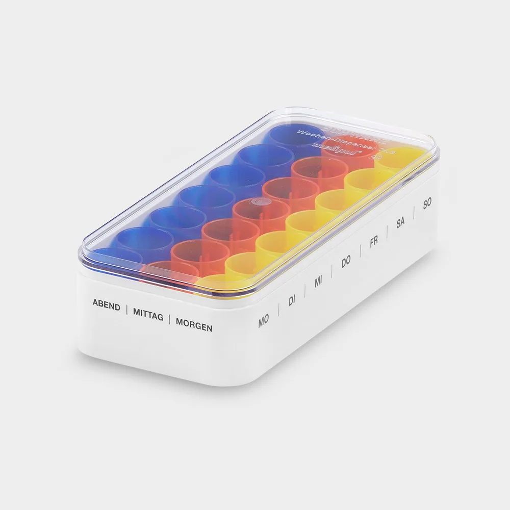 für 7 Tage Morgen / Mittag / Abend stapelbar passend für melipul Mehrwerg-Medikamenten-Becher aus hochwertiger Kunststoff hygienegerecht spülmaschinengeeignet bis 93 C Abmessungen: L 248 x B 110 x H 52 mm