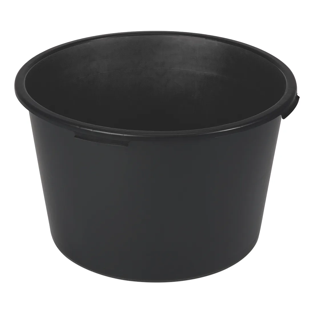Runder Mörtelkübel aus robustem Kunststoff mit einem Fassungsvermögen von 90 Litern. Er besteht aus hochwertigem Recyclingkunststoff und ist schwarz gefärbt. Der Kübel verfügt über vier Griffmulden sowie eine Maßskala und ist durch Rand- und Bodenverstärkungen besonders stabil gestaltet.