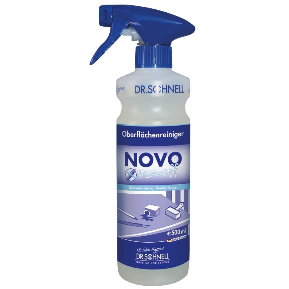 NOVO PEN-OFF auf Tuch sprühen und zu reinigende Fläche bearbeiten.