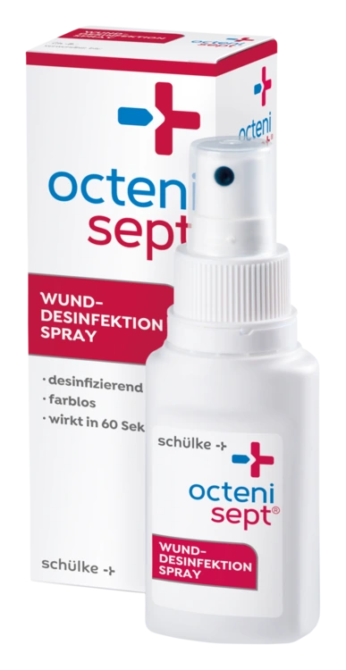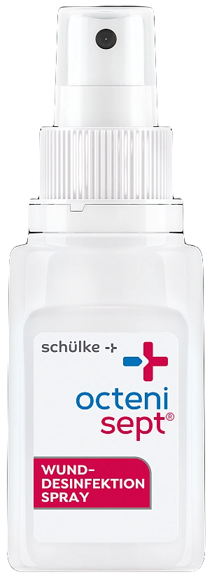 - Sprühmethode: octenisept® kann auch auf schwer zugängliche Haut und Schleimhautgebiete direkt aufgesprüht werden (gleichmäßige Benetzung beachten!).