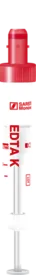S-Monovette® EDTA K3E, K3E, Präparierung: K3 EDTA, 2,7 ml, Membranschraubkappe, Verschluss rot, Farbcode EU, (LxØ) ohne Verschluss: 75 x 13 mm, mit Kunststoffetikett, Etikett/Druck: transparent/rot, 50 Stück/Karton, steril