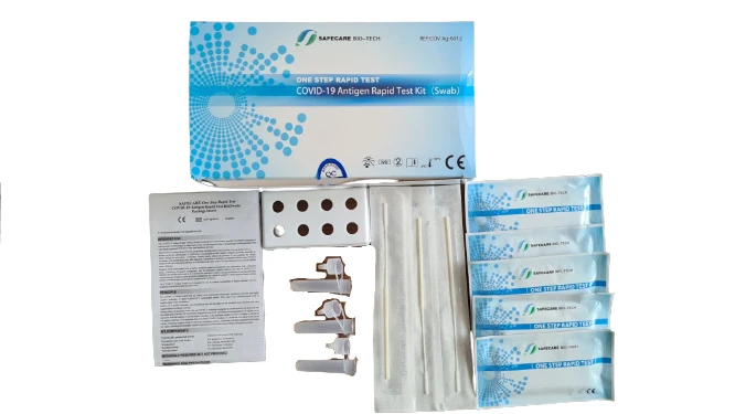 Safecare Antigen ist ein einfach anzuwendender Test zum qualitativen Nachweis von Nucleocapsid-Protein-Antigen in direkten Nasale, naso- oder oropharyngale Proben. Der Test ist einfach abzulesen, erfordert keine Laborinstrumente und liefert in 15 Minuten Ergebnisse.