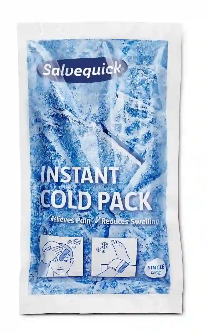 Salvequick Kälte-Sofortkompresse, schmerzlindernd und abschwellend, z. B. bei Verstauchungen. Durch Druck auf die Kompresse platzt der innere, mit Wasser gefüllte Beutel und die Kühlkompresse wird kalt. Die Kompresse ca. 15-20 Minuten auf die Verletzung drücken. Nicht direkt auf die Haut legen, z. B. ein Handtuch oder eine elastische Binde dazwischen legen. Das Produkt kann nicht mehrmals verwendet werden.