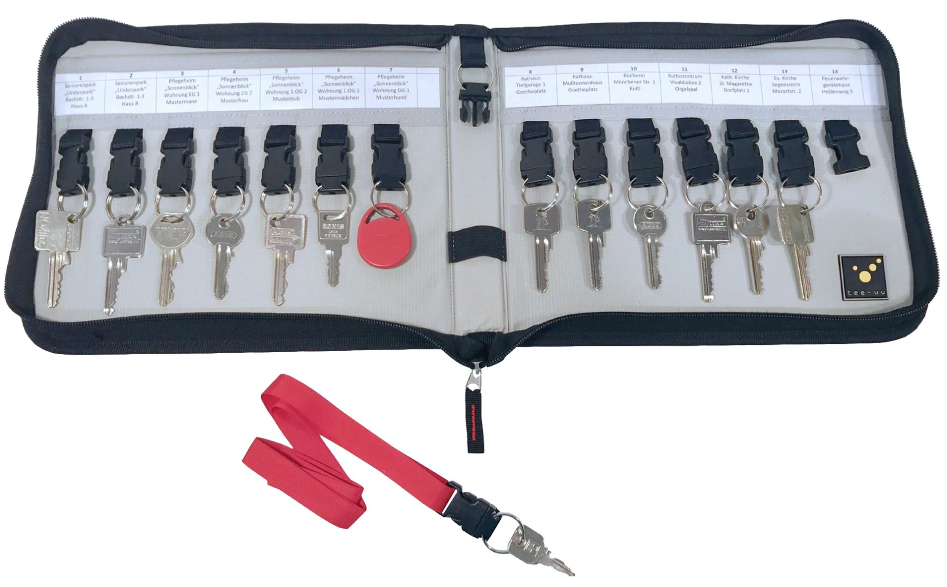 - Platz für 14 Schlüssel mit abnehmbaren Schlüsselclips