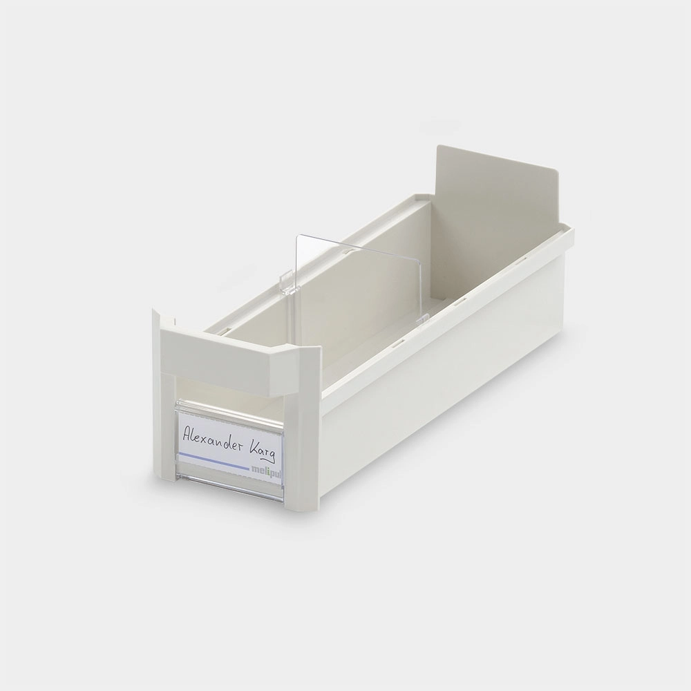 Produktinformationen "Schrankbehälter 10x30 mit Klemmschild und Fachteiler"