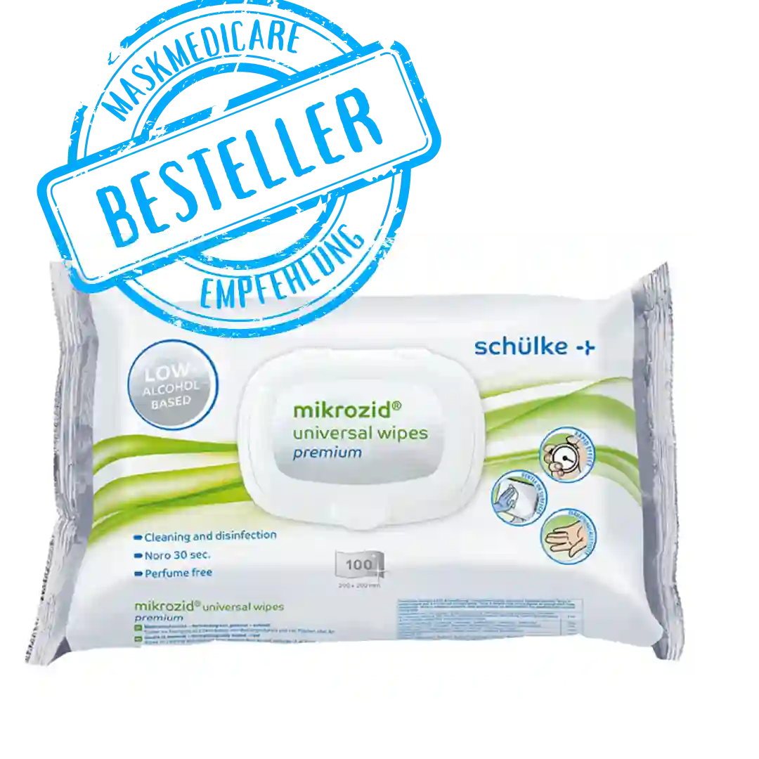 BAuA-Nr.: N-63300, N-63301BestellinformationArtikelLieferformArtikelPZNGTINmikrozid® universal wipes premium (100 Tücher)6 / Karton(e)70000038115513644032651957774mikrozid® universal wipes premium maxi (80 Tücher)6 / Karton(e)70001061125949154032651962273Umweltinformationschülke stellt seine Produkte nach fortschrittlichen, sicheren und umweltschonenden Verfahren wirtschaftlich und unter Einhaltung hoher Qualitätsstandards her.