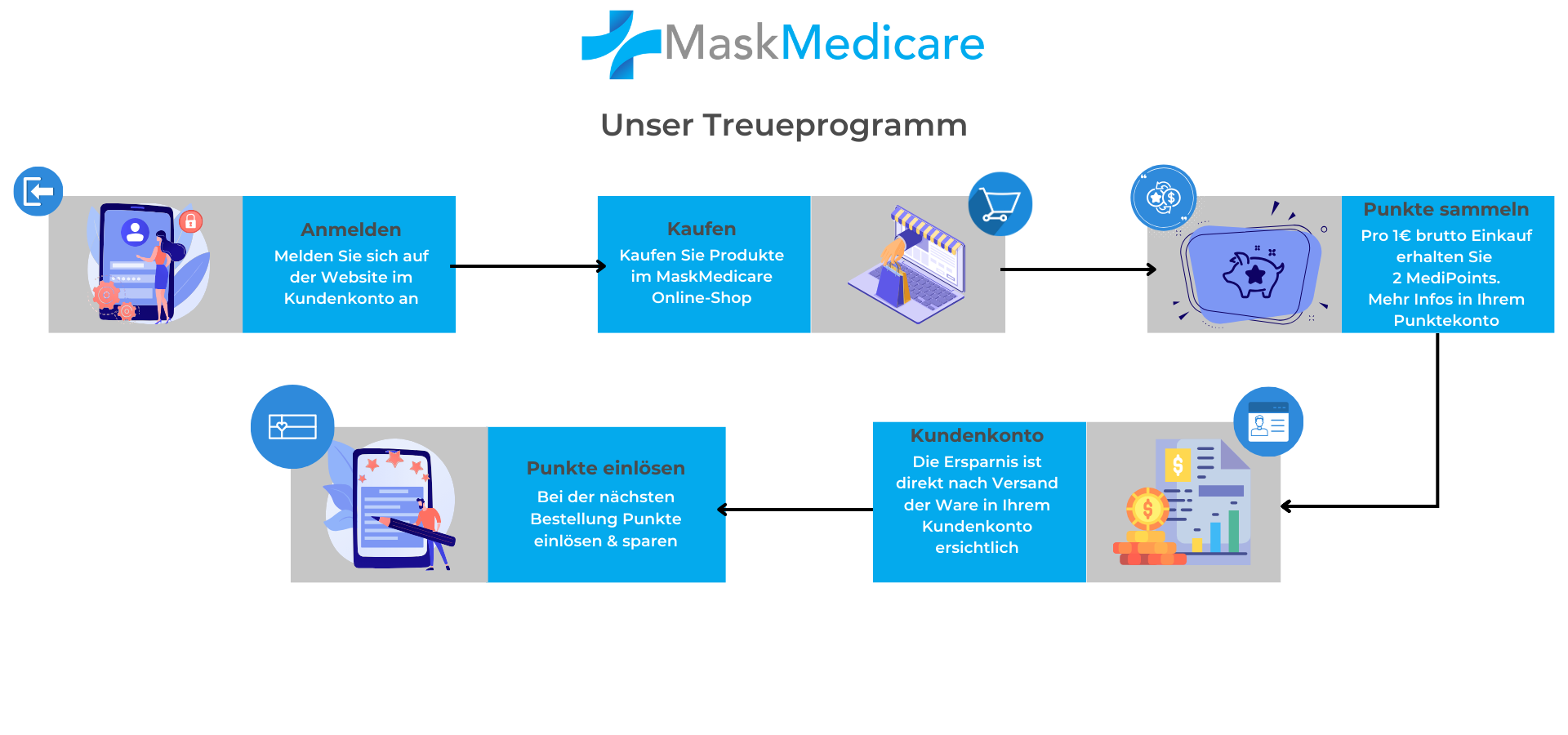 Hier möchten wir Ihnen nochmals eine Übersicht geben, welche Vorteile Sie in unserem Treueprogramm erwartet. Seit dem 01.06.2022 hat jeder Kunde, der ein Kundenkonto besitzt, die Möglichkeit Treuepunkte in Form von “MediPoints" zu sammeln.