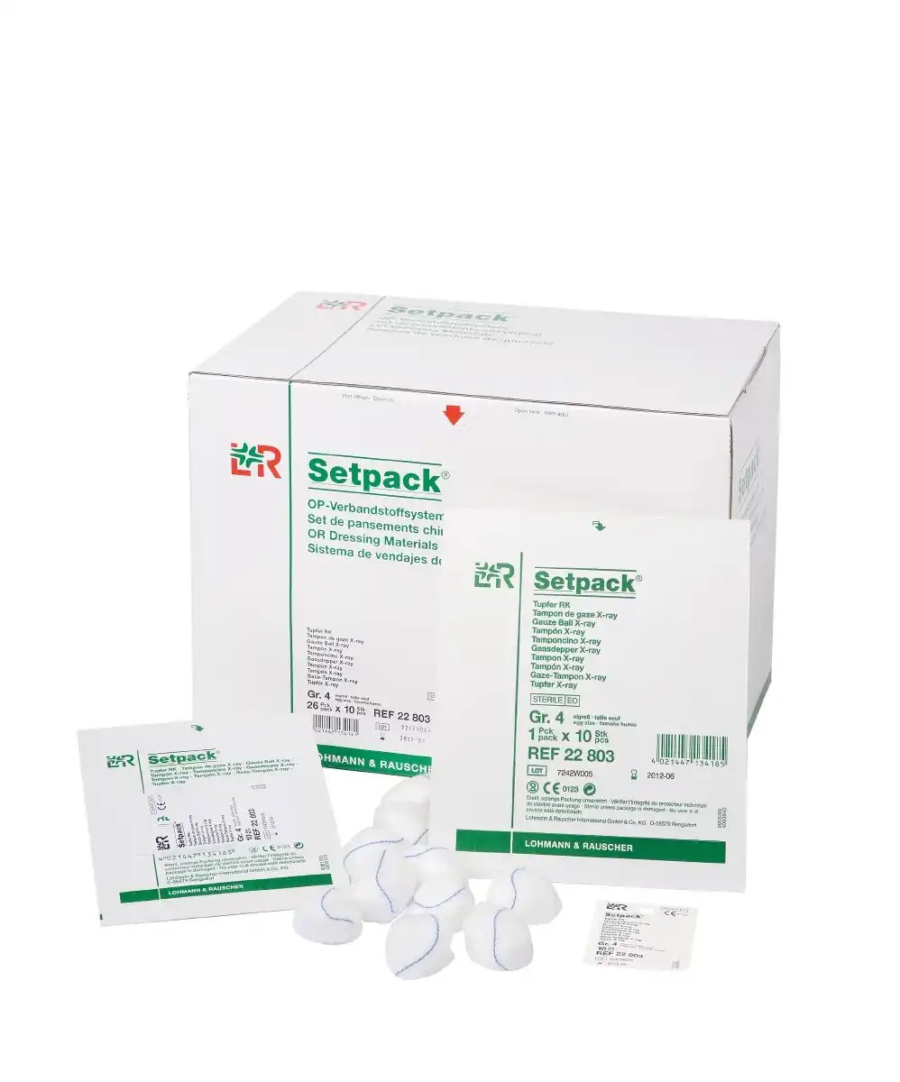 Die gebrauchsfertigen Setpack Tupfer RK aus Verbandmull (DIN EN 14079) eignen sich für den Einsatz im OP-Bereich. Die Tupfer enthalten einen Röntgenkontrastfaden. Jedes Set ist mit einer doppelten, getrennten, selbstklebenden Zählkarte ausgestattet.
