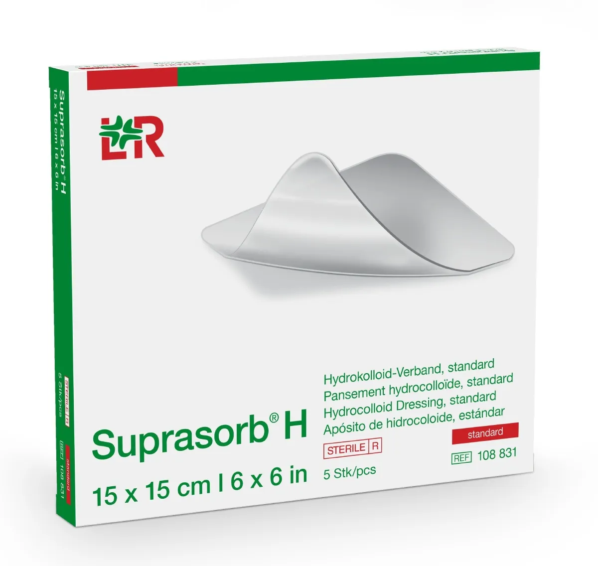 Der Suprasorb H Hydrokolloid-Verband besteht aus einer absorbierenden Hydrokolloid-Matrix, die auf eine atmungsaktive Polyurethan-Trägerfolie aufgebracht ist. Die Hydrokolloid-Matrix absorbiert Exsudat schnell und bildet ein kohäsives Gel. Zusätzlich zur ausgezeichneten Absorptionsfähigkeit bietet die atmungsaktive Polyurethan-Trägerfolie eine hohe Wasserdampfdurchlässigkeit. Die Kombination dieser Eigenschaften gewährleistet eine optimale feuchte Wundumgebung, minimiert das Risiko für Schädigungen der gesunden Wundumgebungshaut und bietet eine Tragezeit von bis zu sieben Tagen. Aufgrund der verschiedenen Ausführungen von Suprasorb H (Standard, Dünn, Sakrum, Border) können verschiedene Indikationen versorgt werden.
