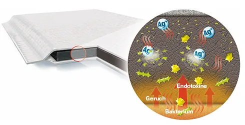 Vliwaktiv Ag vereint die geruchsbindenden Eigenschaften von Aktivkohle mit der antimikrobiellen Wirkung von Silber. Erhältlich als Saugkompresse und Tamponade eignet sich das Produkt zur Versorgung von kritisch kolonisierten Wunden, infizierten und/oder übel riechenden Wunden und Wunden mit erhöhtem Infektionsrisiko.